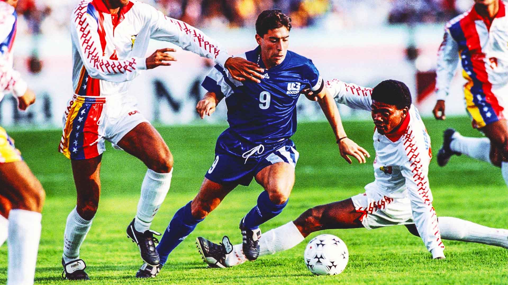 Tab Ramos of the United States attacks during the 1993 Copa America in Ecuador. (Credit: Shaun Botterill/ALLSPORT)