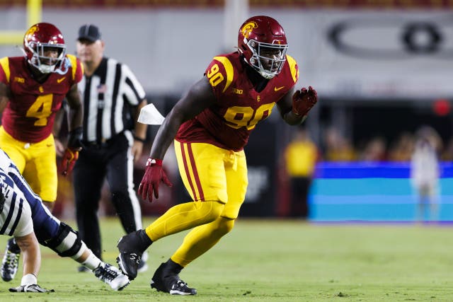 “The guy’s out here working hard,” Riley said. “He’s improving. He’s in a new system with a new coach. He’s getting better. I think he’s going to continue to get better. It should be hard to play D-line at USC. It wasn’t hard last year, and that’s why we weren’t very good up there. We’re pretty decent up there [now], and it’s hard, and the margins are thin.”