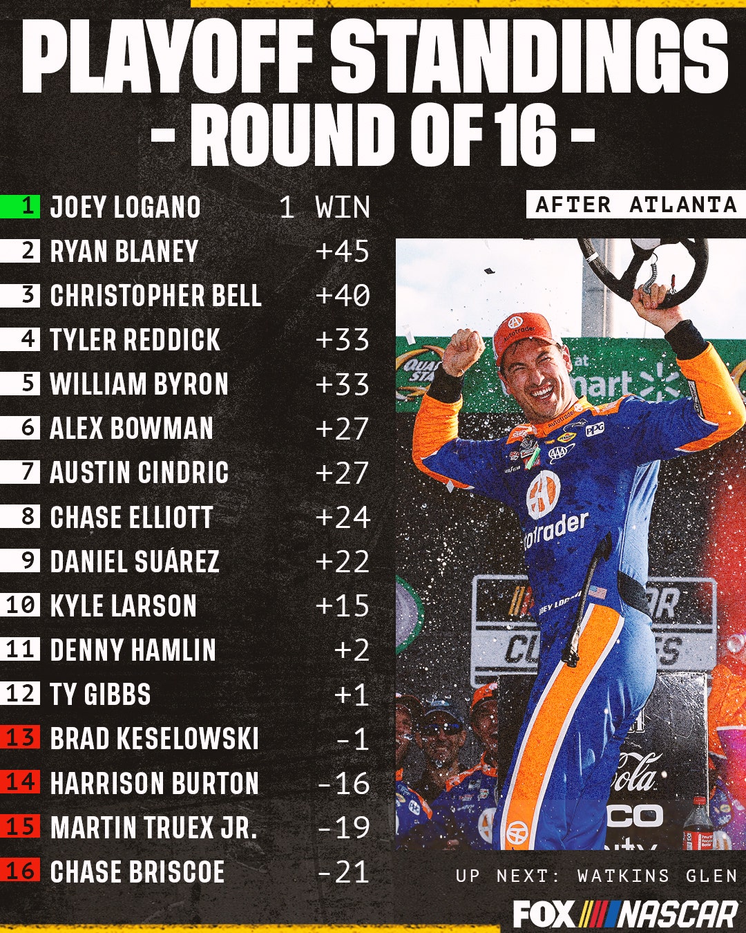 Logano doesn’t have to worry about the next two races except to earn potentially more playoff points that could help if he doesn’t win in the upcoming rounds.