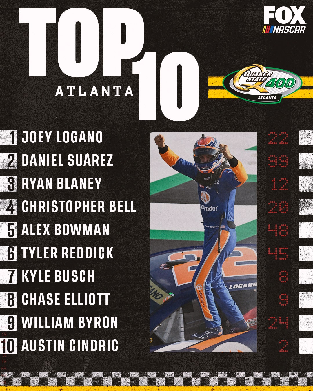 Takeaways from Atlanta where Logano, Suarez and Blaney were followed by Christopher Bell and Alex Bowman in the top-5.