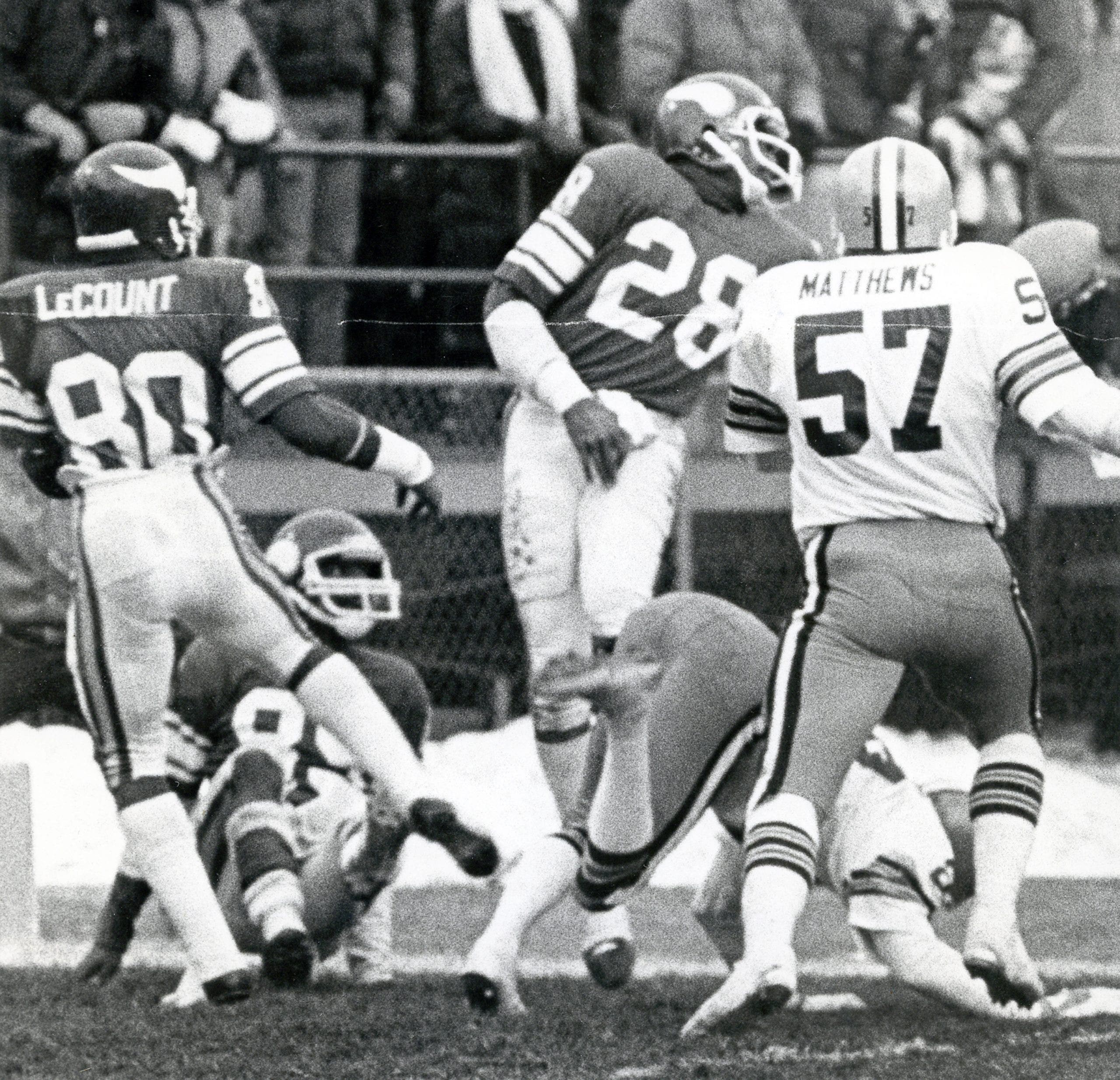 Minnesota called a hook-and-lateral on the first play, bringing it to Cleveland’s 46-yard line with four seconds left. Vikings quarterback Tommy Kramer launched a pass down the sideline that was tipped by a Browns defender around the goal line. The tip allowed Vikings wide receiver Ahmad Rashad to snag the ball with one hand at the 1-yard line before falling into the end zone to give Minnesota a 28-23 win.