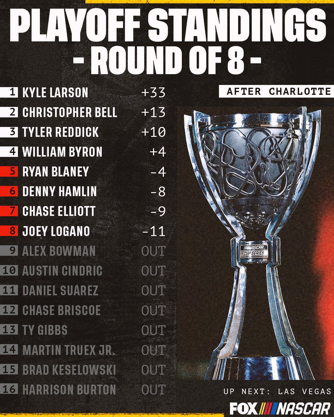 With Bowman being eliminated, Joey Logano moved into the final advancement spot to the Round of 8 (NASCAR’s version of a semifinal round).