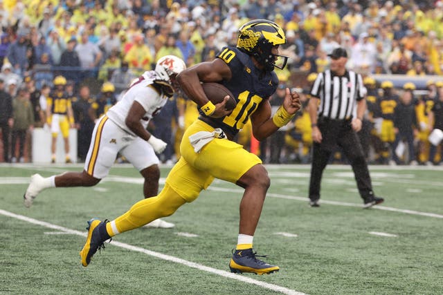 Things to like: The emergence of converted linebacker Kalel Mullings as one of the more dynamic tailbacks in the Big Ten has given Michigan an offensive focal point in the post-Blake Corum era. Mullings ranks eighth nationally in rushing with 540 yards through the first five games and continues to produce against defenses that know the Wolverines are running the ball. A hellacious defensive line led by interior stars Mason Graham (three sacks) and Kenneth Grant (two sacks) is among the best in college football. Michigan is equally adept at stopping the run and has limited opponents to 68.8 rushing yards per game, the program’s lowest mark through its first five games since 2006.