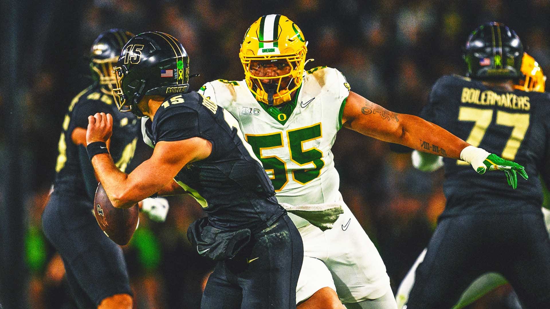 The Panthers have plenty of problems, but none uglier than a run defense that has surrendered a league-high 17 touchdowns through just 10 games. Harmon is one of the fastest-rising prospects in the country, emerging this year for the Ducks after transferring from Michigan State. At 6-foot-5 and 330 pounds, he possesses both NFL-caliber girth and power to collapse the pocket and stuff opposing rushing attacks.