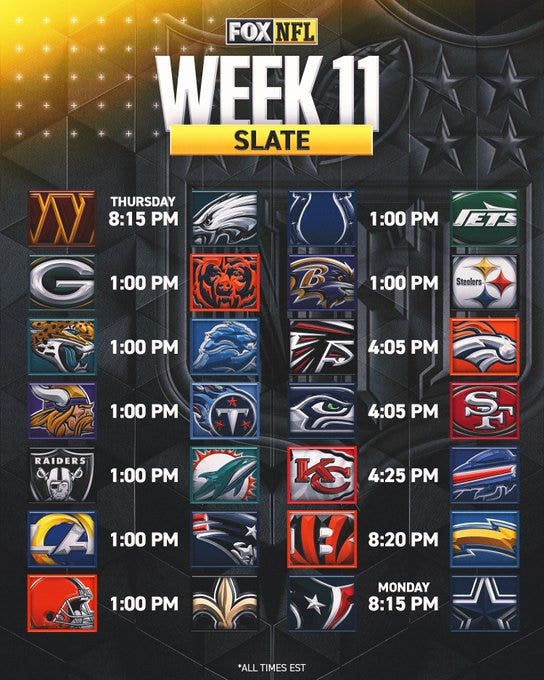 This week’s NFL slate features three games between teams with seven wins or more, the most such matchups in Week 11 in league history. That includes the Chiefs, who have nine wins, against the Bills, who have eight. Could this be the week when the NFL’s last undefeated team goes down?