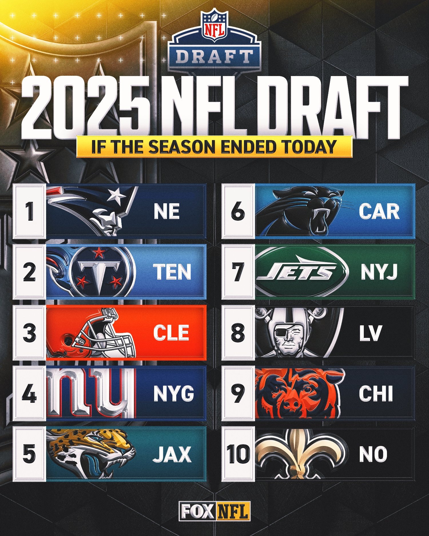 It’s a winnable game for Jerod Mayo’s squad — even if most in New England are likely hoping the team loses. Let’s talk about what happens if the Pats lose. But, first, here’s where the top 10 in the NFL draft order currently stands: