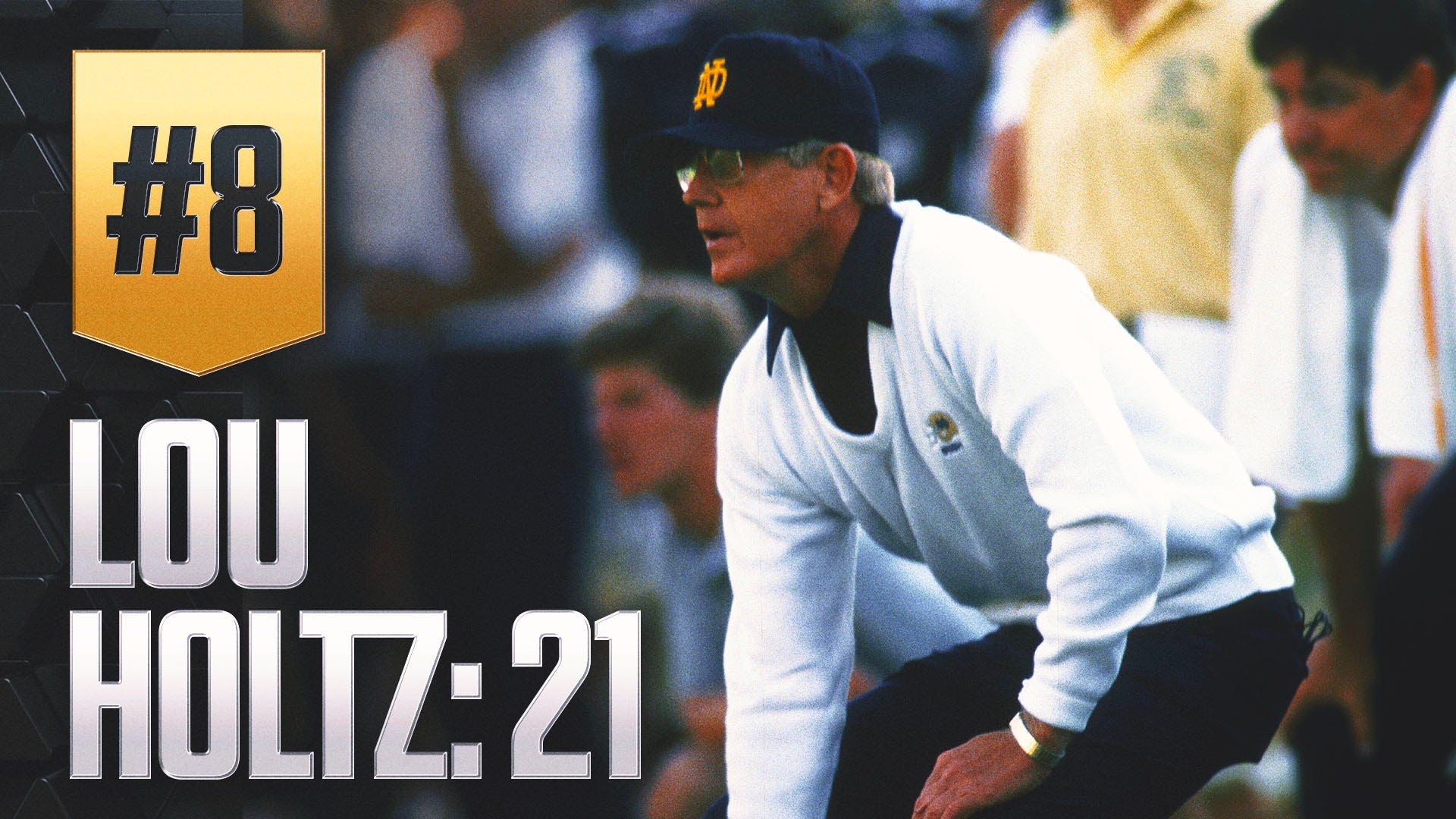 Holtz’s coaching career is mostly associated with Notre Dame as he helped return the Fighting Irish to prominence in the 1980s and 1990s, but the national championship-winning coach coached up first-round picks at three stops. At Arkansas, he helped make defensive tackle Dan Hampton become the fourth overall pick in the 1979 NFL Draft. At South Carolina, Holtz coached defensive end John Abraham, who was the 13th overall pick in the 2000 NFL Draft. Of course, most of the first-round picks Holtz coached came during his stint at Notre Dame. Thirteen of his former Fighting Irish players were first-round picks, with Hall of Famer Tim Brown being chief among them.