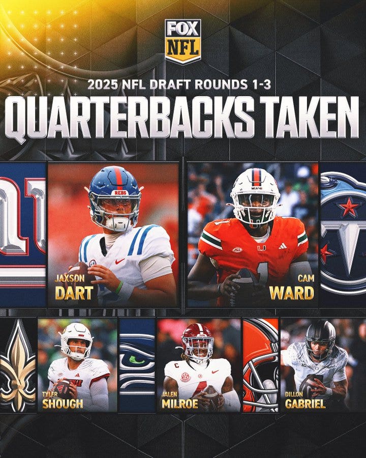 Of course, to the Browns it made perfect sense. Clearly, they are desperate for a quarterback of the future, since their current QB room consists of 40-year-old Joe Flacco, Kenny Pickett and Deshaun Watson, who has torn his Achilles twice. But like everyone else in the NFL, they’ve obviously re-evaluated Sanders, who not that long ago was widely considered one of the top two quarterbacks in this draft.