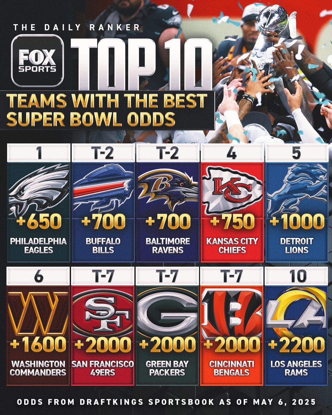 One of the league’s top dual-threat quarterbacks, Hurts cemented his status as one of the better playoff quarterbacks of his generation in the Eagles’ run to winning Super Bowl LIX, where he won MVP honors. Brown and Smith remain one of the NFL’s elite receiver tandems, though their combined numbers dipped a bit this past season (135 receptions for 1,912 yards and 15 touchdowns) with running back Saquon Barkley being the focal point of the offense.