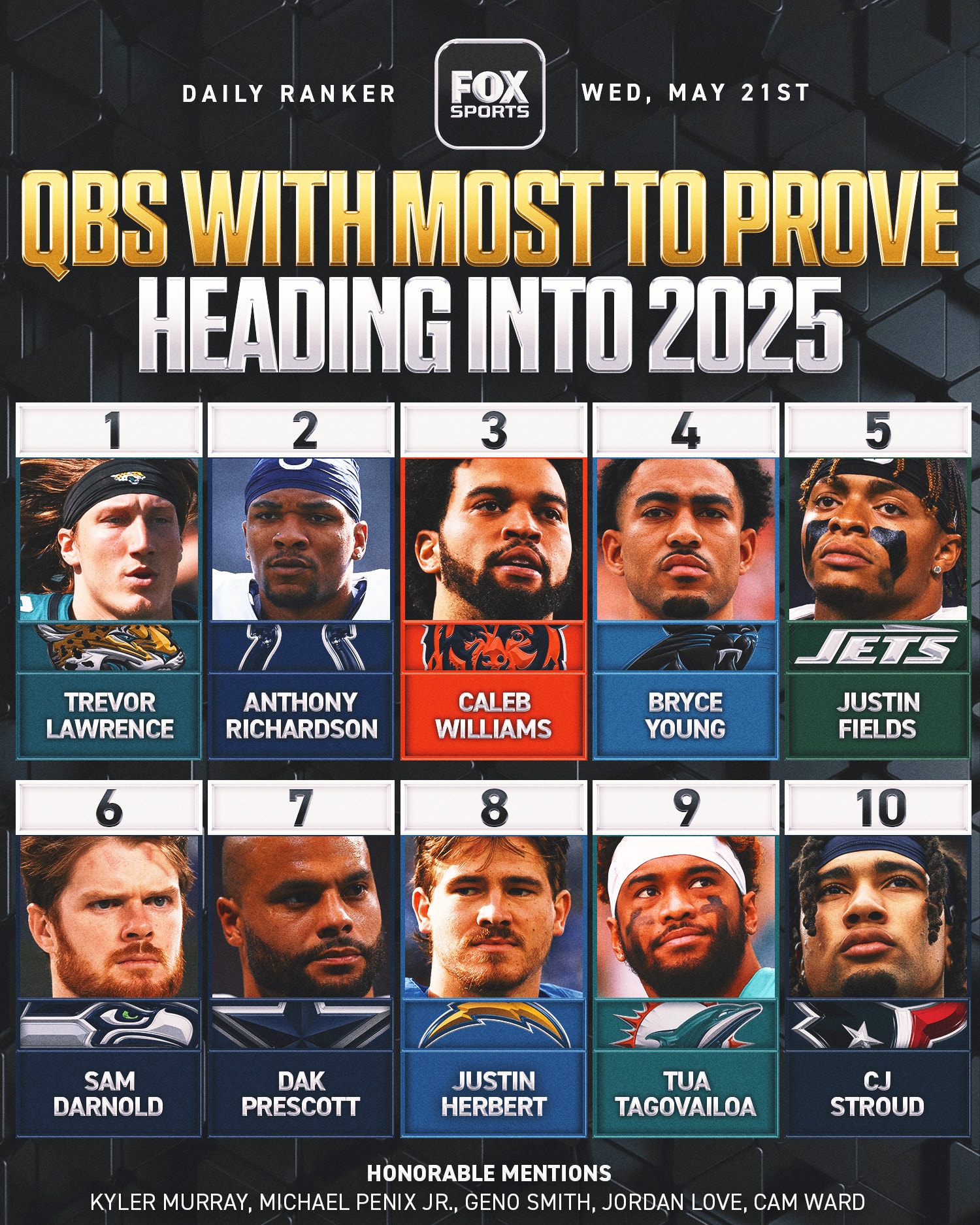 Williams threw for 3,541 yards and 20 touchdowns against just six interceptions. He finished the season with a cumulative quarterback rating of 87.8. Advanced metrics tell a more dire story. Williams’ total EPA, a metric his new coach Ben Johnson is very familiar with, was second-to-last among passers with at least 350 dropbacks last season, according to Next Gen Stats. The only quarterback who scored lower? Will Levis.