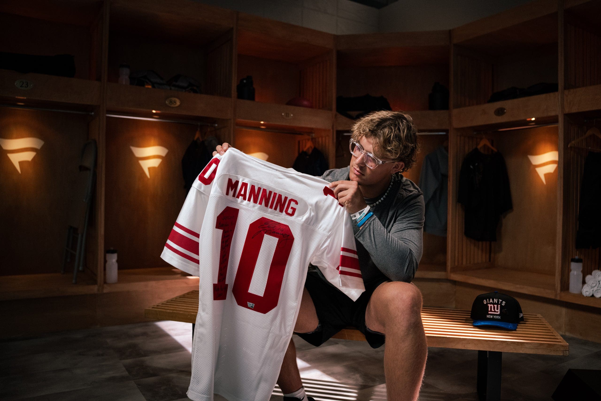 At the NFL Rookie Premiere event in May, Jaxson Dart received a signed jersey and video message from former Giants QB and fellow Ole Miss Rebel Eli Manning. (Courtesy of Fanatics)