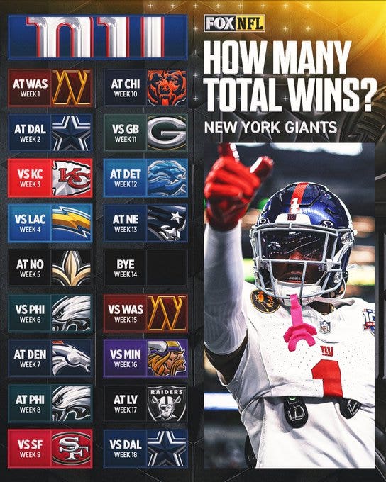 At least it would if the Giants didn’t have the NFL’s most difficult schedule in 2025.