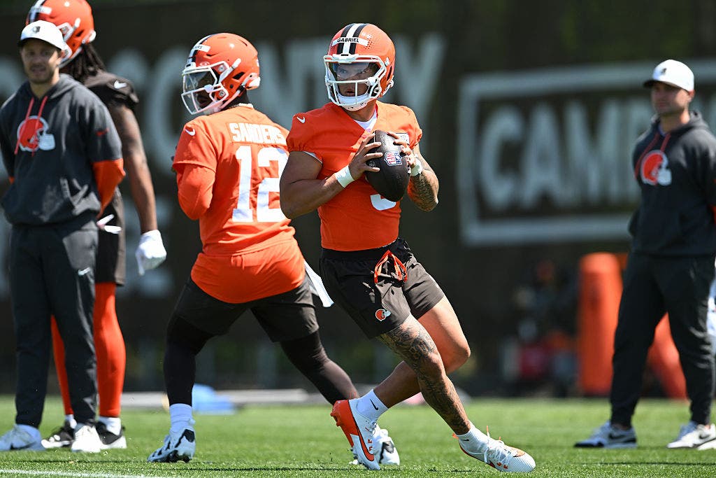 Dillon Gabriel is one of five quarterbacks on Cleveland’s roster, including fellow rookie Shedeur Sanders. Except for the injured Deshaun Watson, any of the other four could start games for the Browns. (Photo by Nick Cammett/Diamond Images via Getty Images)