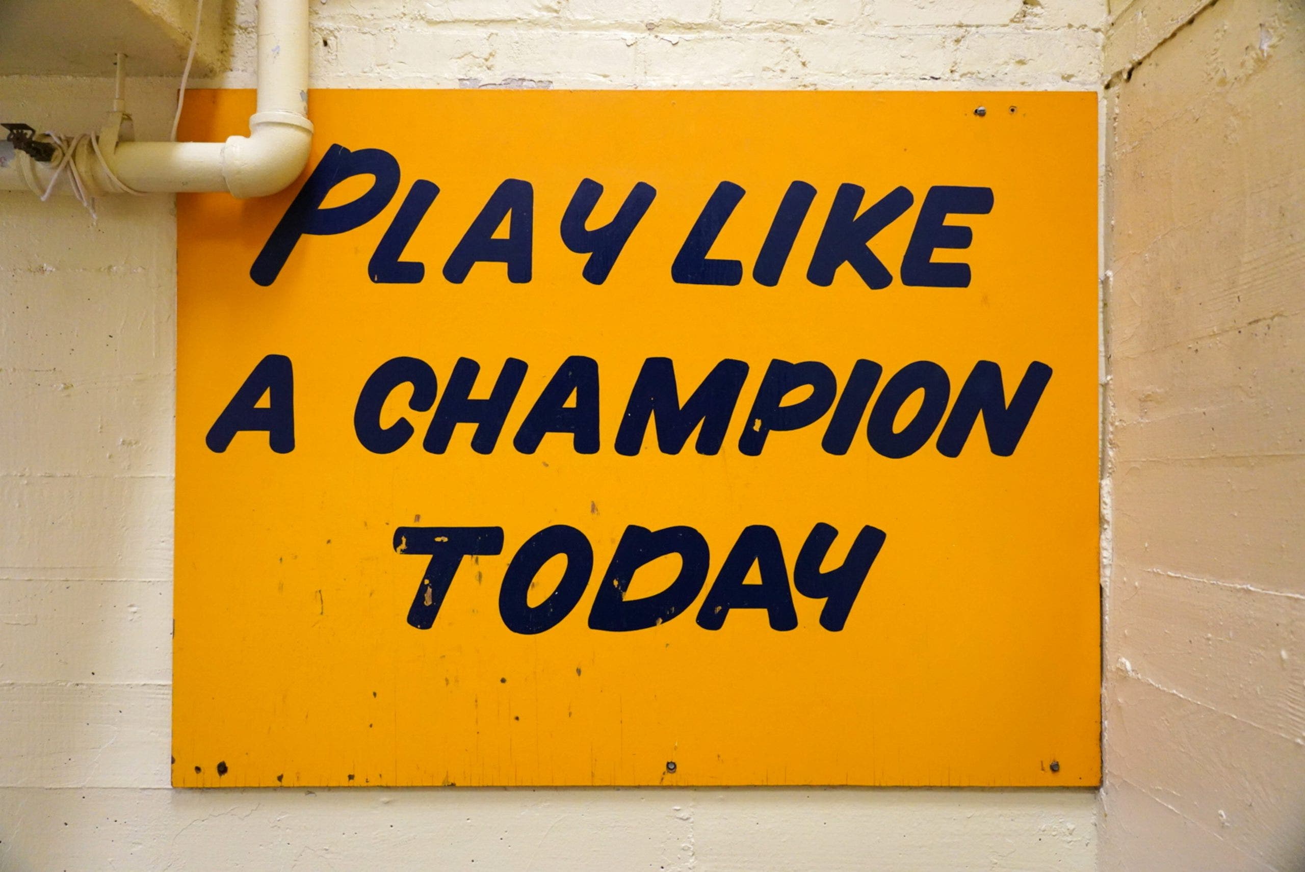The 94-year-old Notre Dame Stadium has gone through plenty of renovations over the years, but the iconic “Play Like A Champion Today” sign that its players tap before taking the field remains. (Photo by Erick W. Rasco /Sports Illustrated via Getty Images).