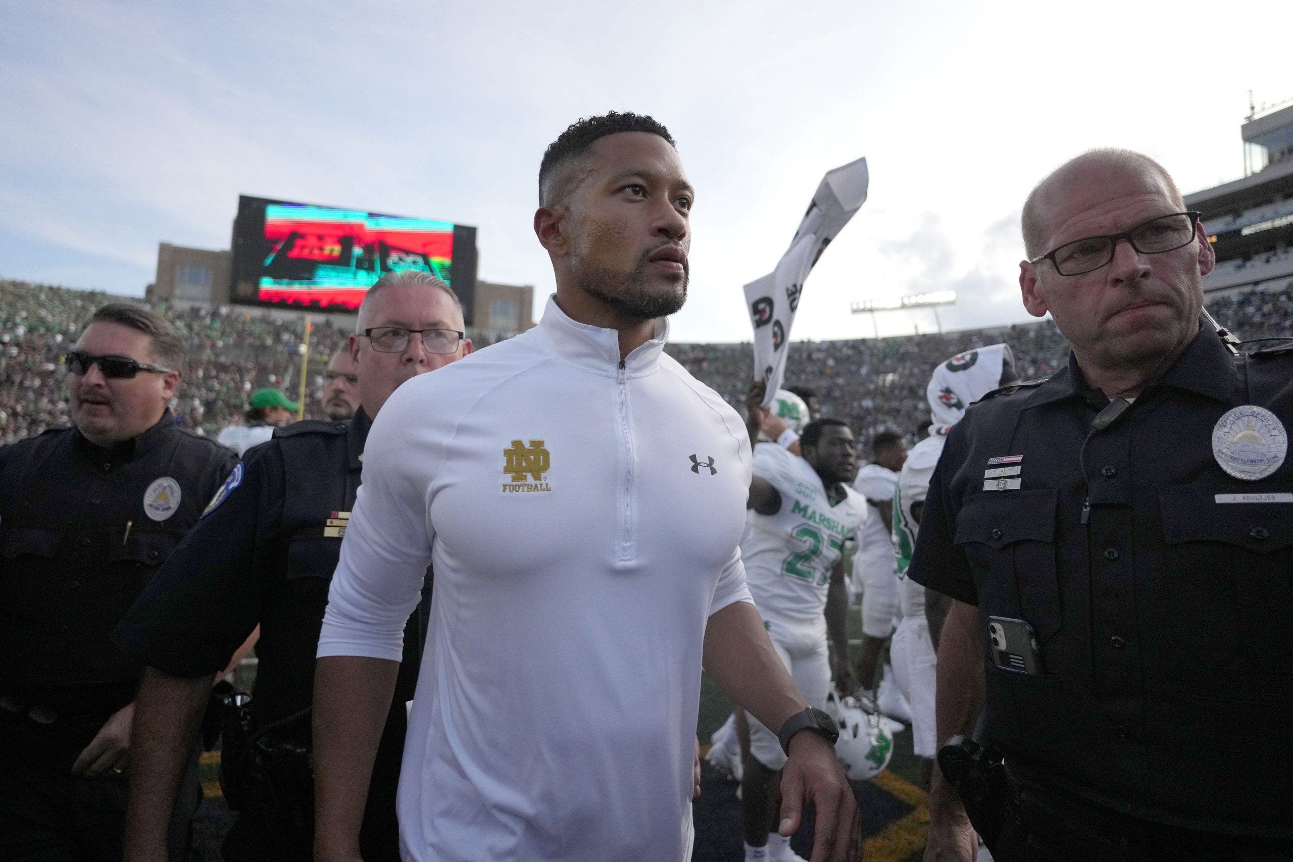 Marcus Freeman lost his first home game as Notre Dame’s head coach to Marshall in 2022. (Photo by Robin Alam/Icon Sportswire via Getty Images)