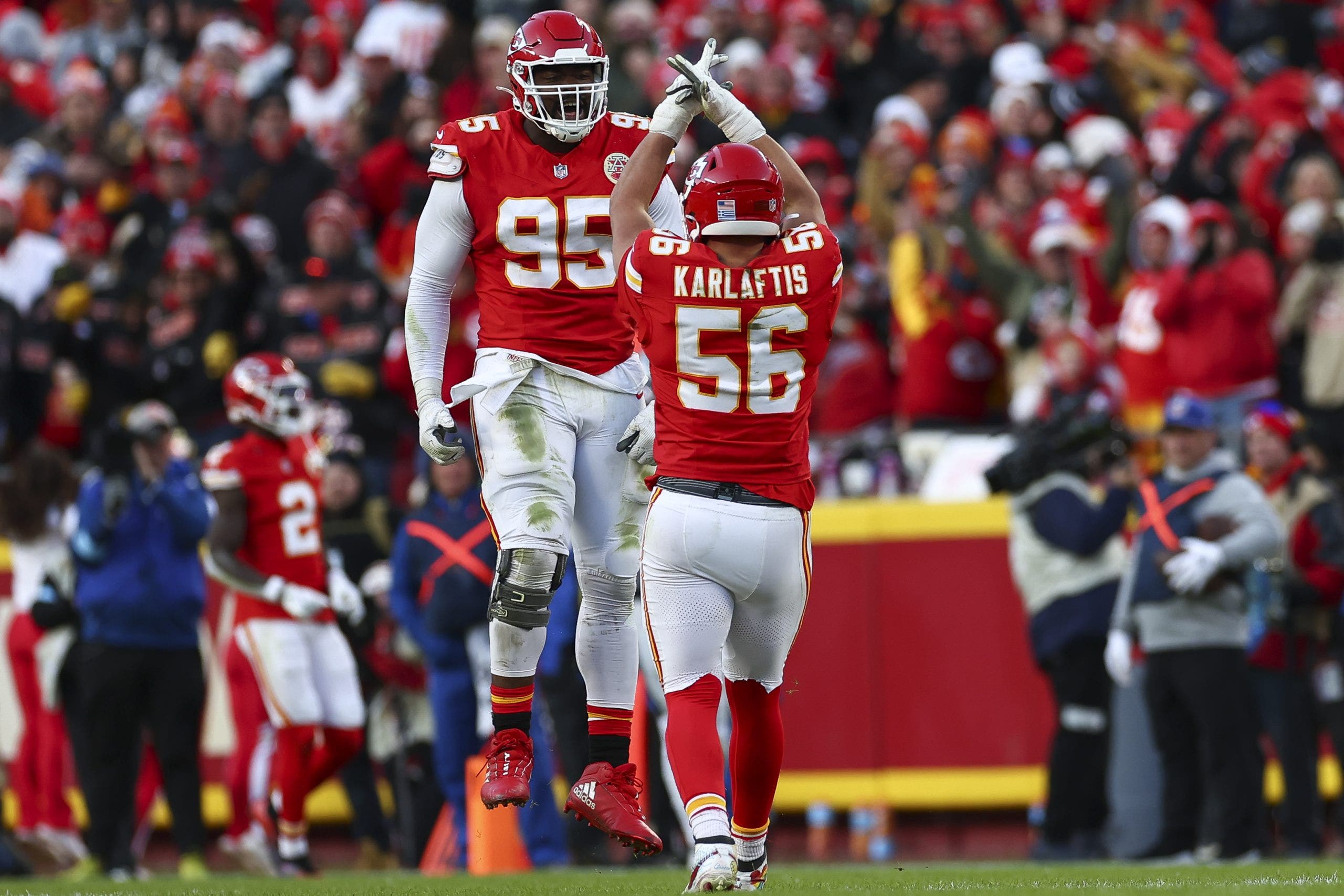 Chris Jones and George Karlaftis combined for 13 sacks last season. (Photo by Aaron M. Sprecher/Getty Images)