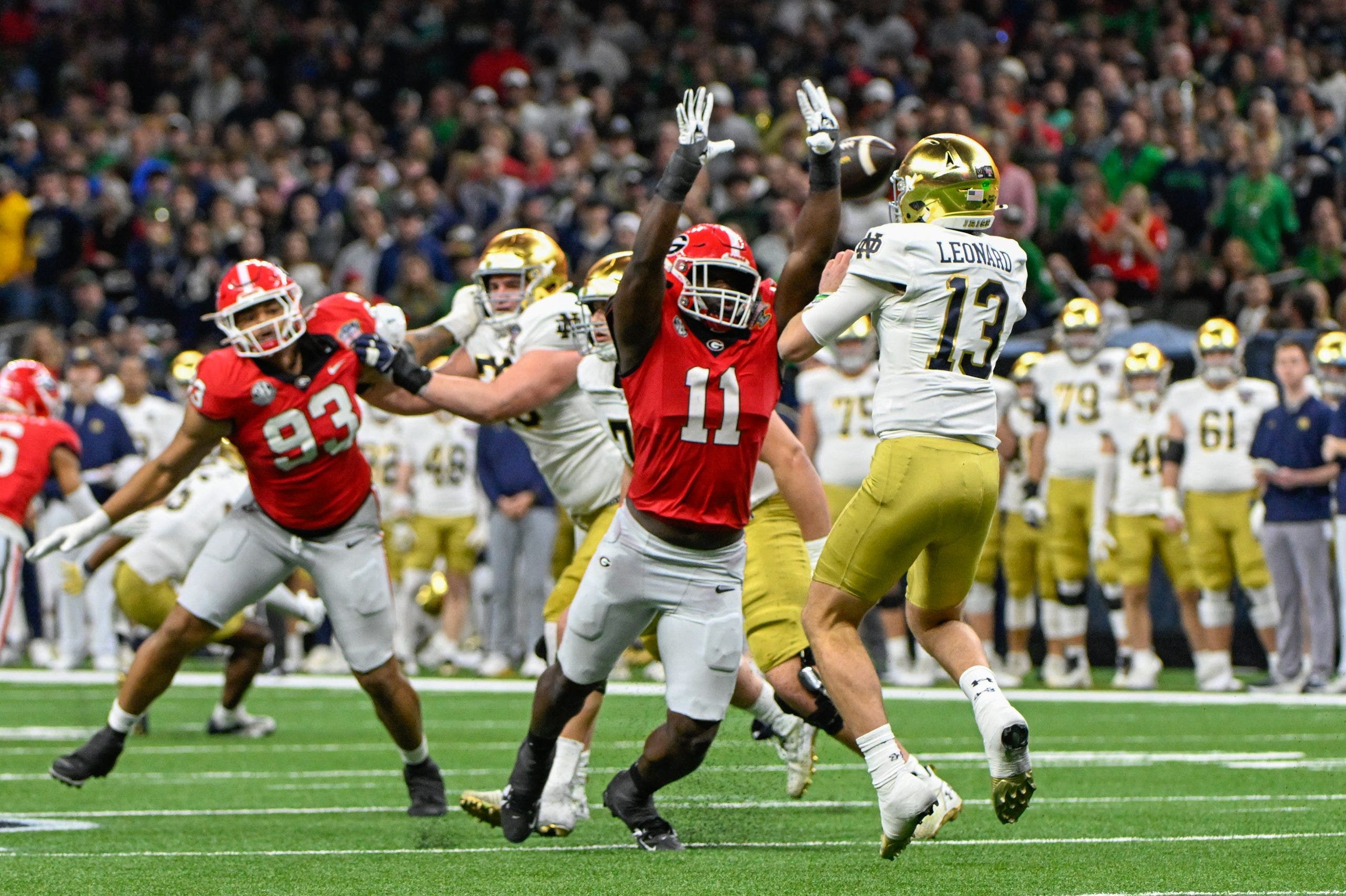 Georgia Bulldogs defensive lineman Mykel Williams (13) during the college football game between the Tennessee Volunteers and the Georgia Bulldogs on November 16, 2024, on Dooley Field at Sanford Stadium in Athens, GA. (Photo by John Adams/Icon Sportswire via Getty Images)
