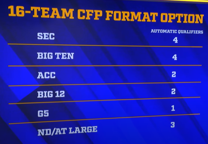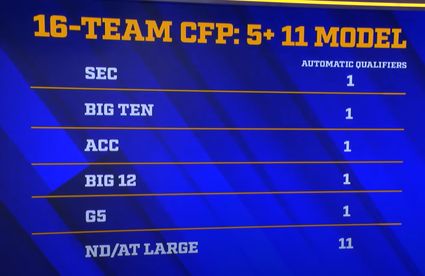 The 5+11 model is one of the formats being proposed for the 16-team CFP expansion.