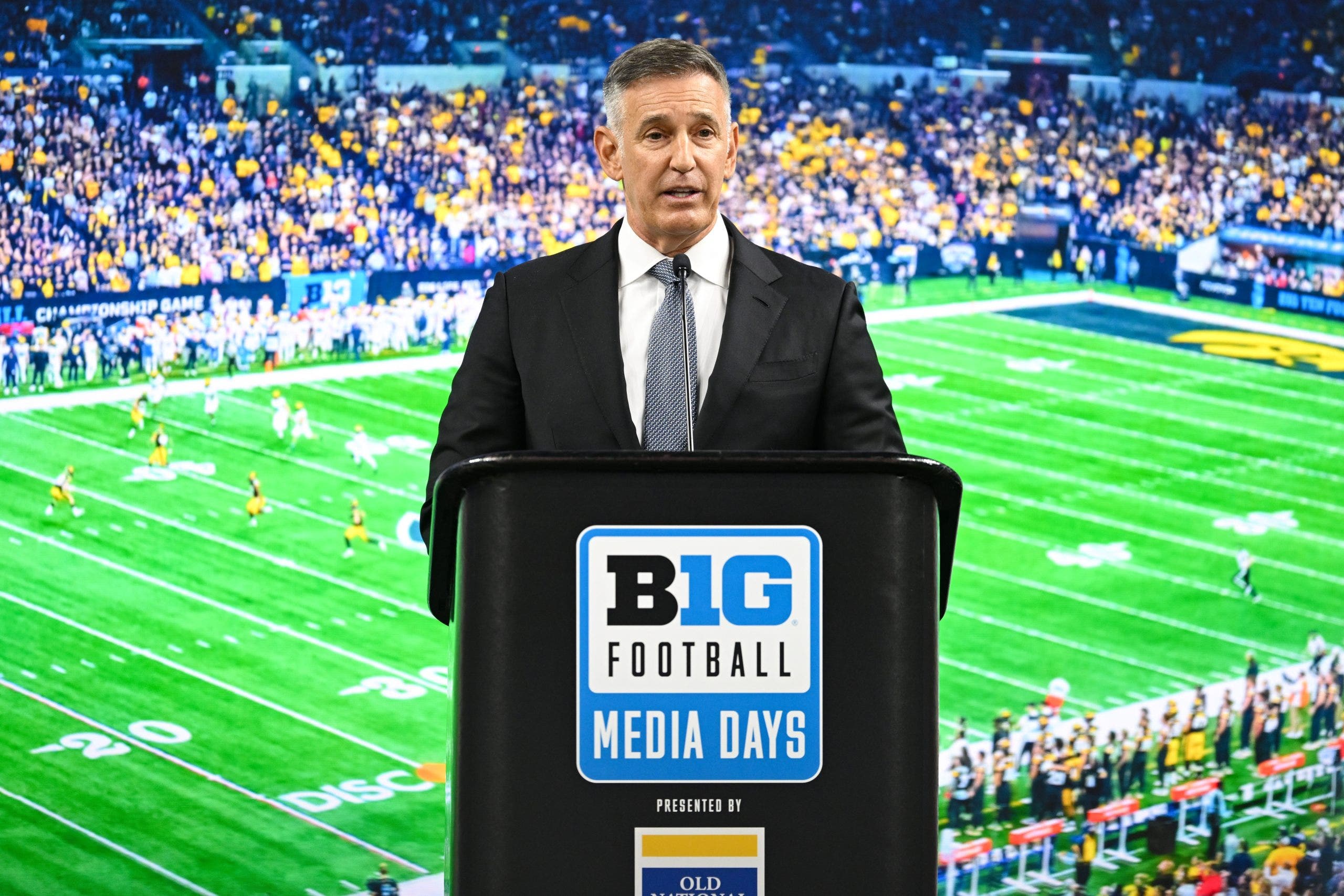 Big Ten commisioner Tony Petitti could help his conference receive four automatic bids in the next round of College Football Playoff expansion. (Photo by James Black/Icon Sportswire via Getty Images)