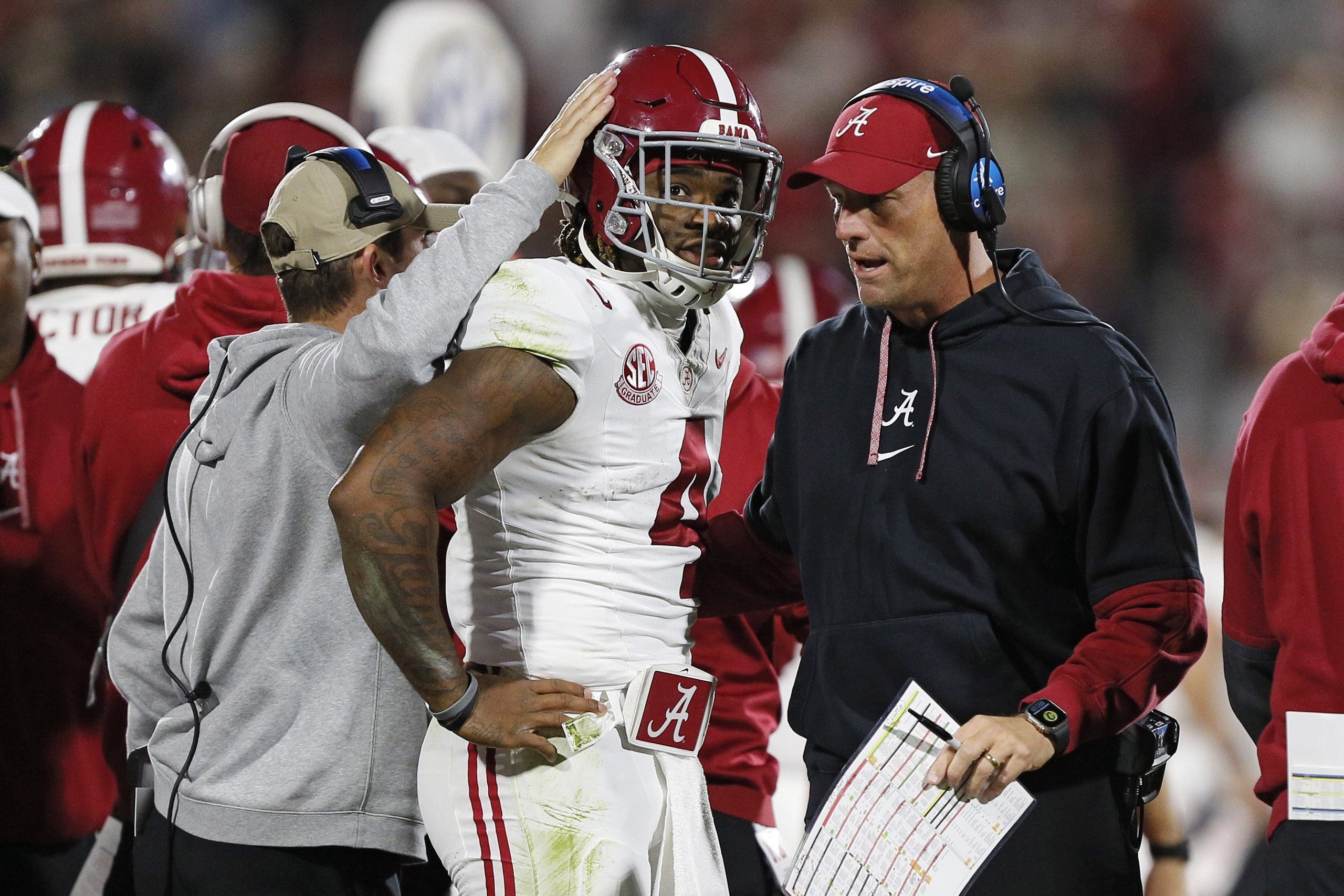 Jalen Milroe, Kalen DeBoer and Alabama could’ve made the College Football Playoff last season in an expanded field. (Photo by Brian Bahr/Getty Images)