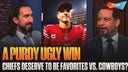 Brock Purdy threw 3 INTs against the Carolina Panthers, but the San Francisco 49ers won 20-9 despite the poor performance. Nick Wright, Chris Broussard, and Kevin Wildes ask if the 49ers should be worried about Purdy, and if the Kansas City Chiefs deserve to be favorites against the Dallas Cowboys.