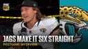 Alison Williams speaks with Trevor Lawrence after Jacksonville’s win over Denver, as Lawrence reflects on the momentum-building victory and the Jaguars extending their winning streak to six straight.