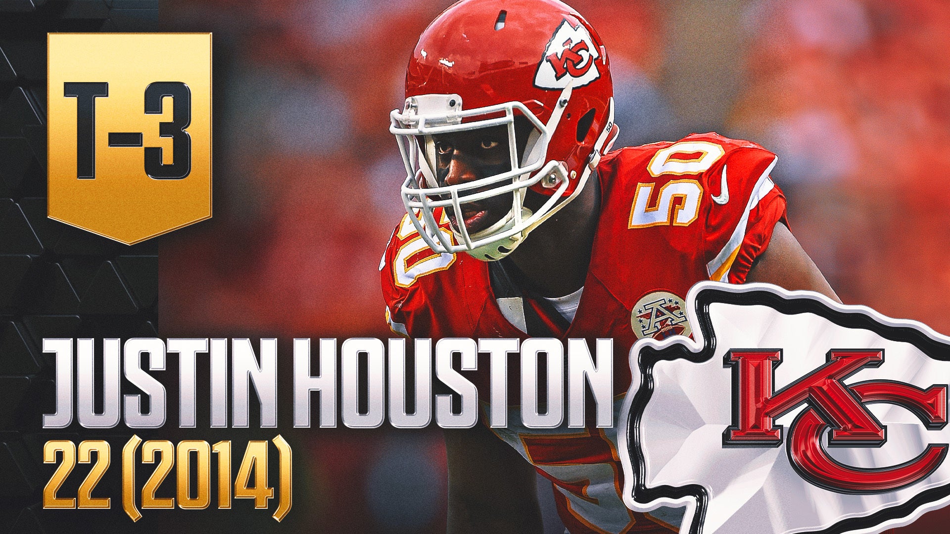 While Watt’s 20.5-sack season won him Defensive Player of the Year in 2014, he didn’t have the most sacks that season. Houston recorded 22 sacks with the Kansas City Chiefs in 2014, adding 69 combined tackles and four forced fumbles to go with them. Four of his sacks came in the Chiefs’ regular-season finale, surprisingly bringing him within a half-sack of the all-time record.