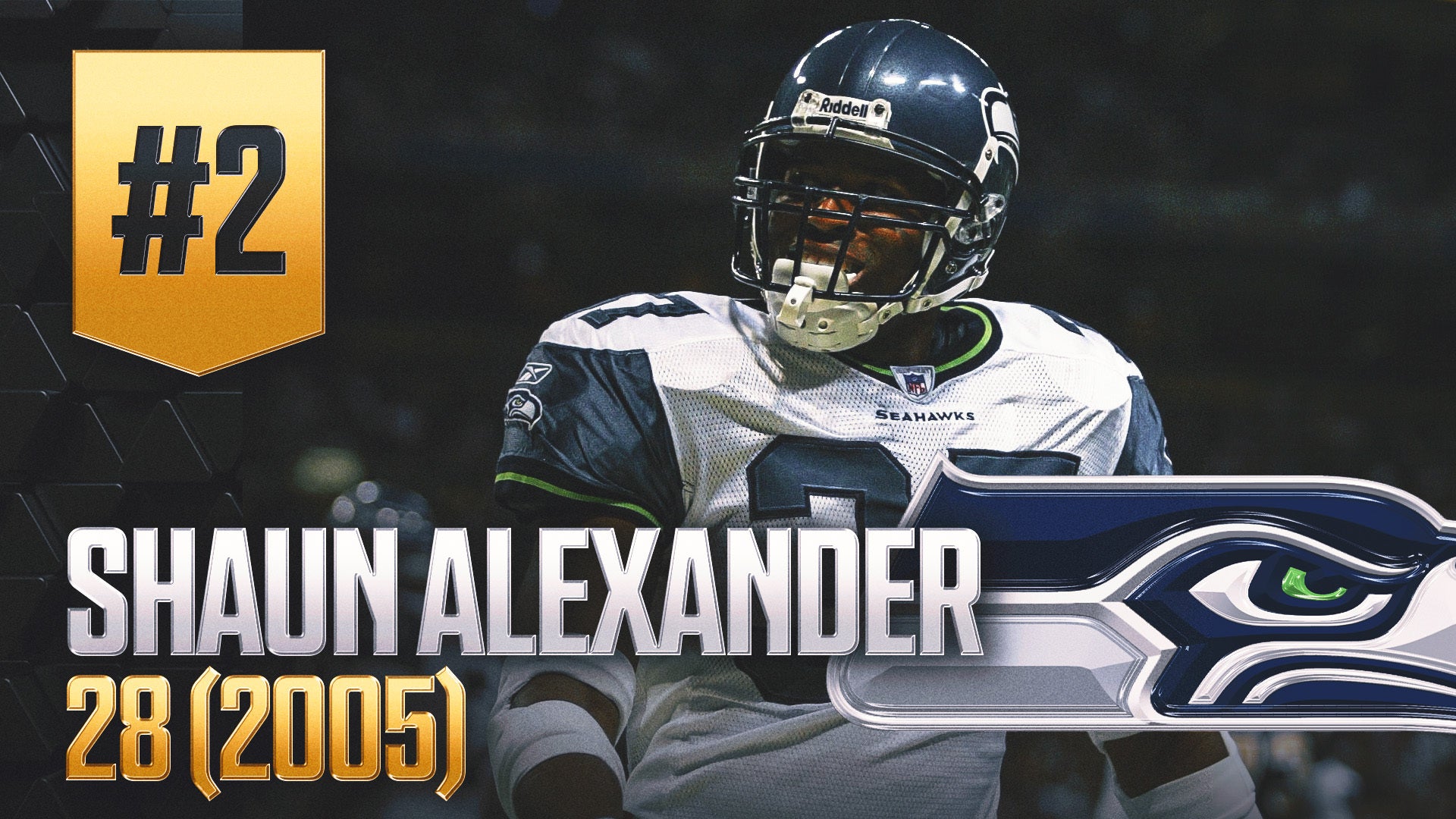 The Seattle Seahawks handed the ball off to Shaun Alexander a lot in 2005 — an NFL-high 370 times, to be exact — and he rewarded their faith in him by having a historic season. Rushing for an NFL-high 1,880 yards and 27 touchdowns with one receiving score to boot, Alexander won the 2005 NFL MVP award on a Super-Bowl-bound Seahawks team. Alexander is No. 1 (27 in 2005) and No. 2 (16 in 2004) in Seahawks history in rushing touchdowns in a single season.