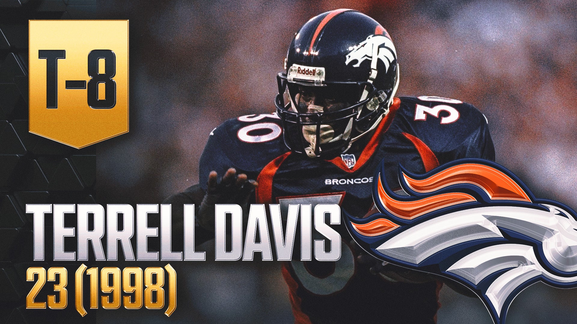 Davis put together one of the best campaigns for a running back in NFL history in 1998, a year that the Denver Broncos repeated as Super Bowl champions. In the regular season, Davis rushed for an NFL-high 2,008 yards and 21 touchdowns, while also totaling 25 receptions for 217 yards and another two scores. He then rushed for 468 yards and three touchdowns in the postseason. Through 2023, Davis held the NFL single-season combined rushing record (2,476 combined rushing yards in the regular season and postseason) until Saquon Barkley (2,504 combined rushing yards with the Philadelphia Eagles) passed the Hall of Famer in 2024.