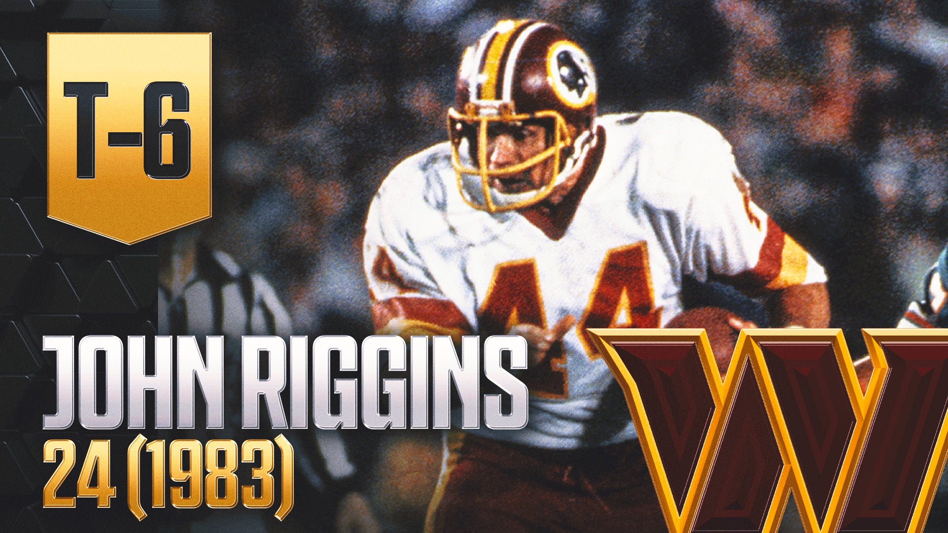 Riggins was a menace for Washington, with arguably his best single season coming in 1983 when he rushed for 1,347 yards and an NFL-high 24 touchdowns. He then rushed for 306 yards and six touchdowns in the playoffs, helping Washington reach the Super Bowl for a second consecutive year. Riggins, the MVP of Super Bowl XVII, led the NFL in rushing touchdowns again the ensuing season, totaling 14 scores on the ground in 1984.