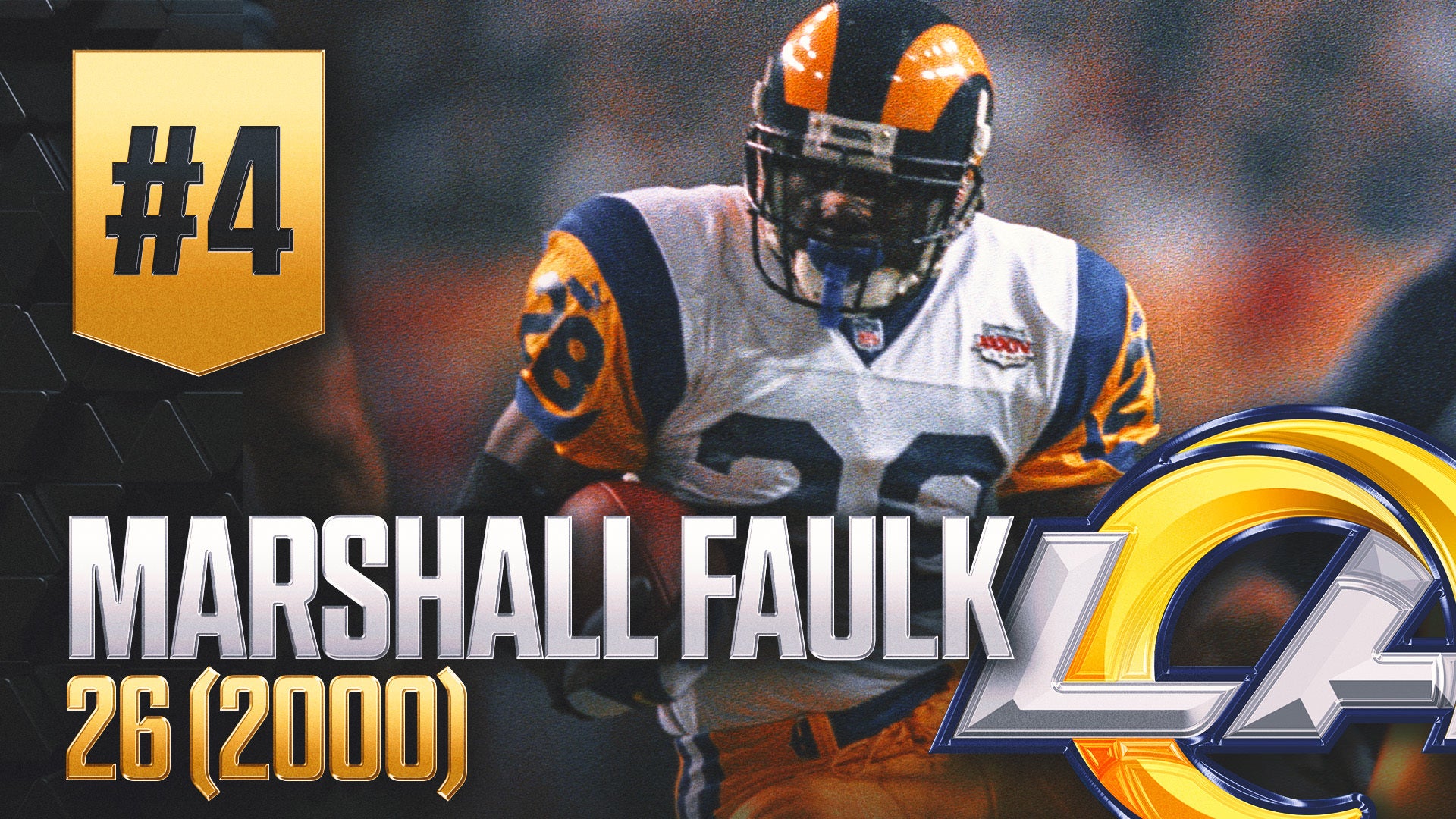 After helping St. Louis win Super Bowl XXXIV in his first season with the franchise, Faulk rushed for 1,359 yards and an NFL-high 18 touchdowns on an NFL-high 5.4 yards per carry in just 14 regular-season games in 2000. He also totaled 81 receptions for 830 yards and eight scores, which was second on the Rams. Faulk won the 2000 NFL MVP award.