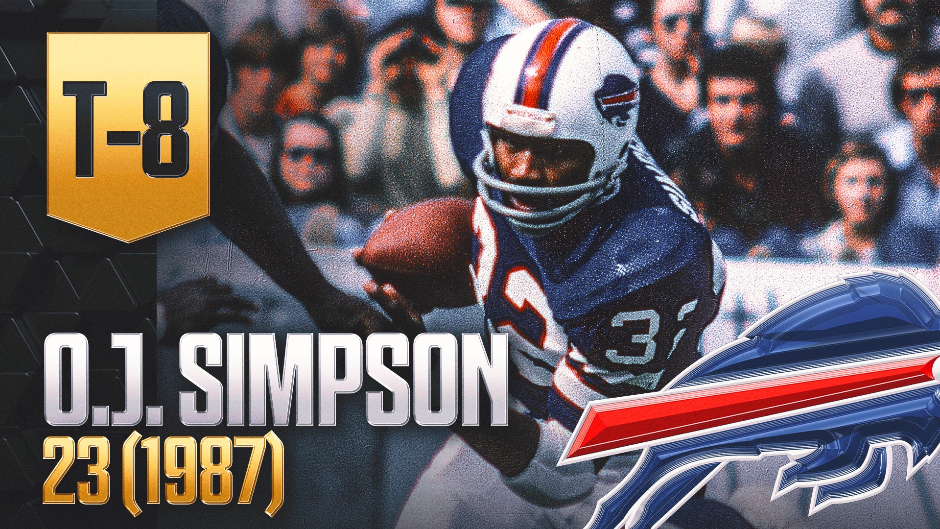 In what was arguably the best season of the five-time All-Pro’s career, Simpson rushed for an NFL-high 1,817 yards and 16 touchdowns on 5.5 yards per carry (another high) for the Buffalo Bills in 1975. He also tallied 28 receptions for 426 yards and seven scores. Simpson earned both All-Pro and Pro Bowl honors that year and was the MVP runner-up.