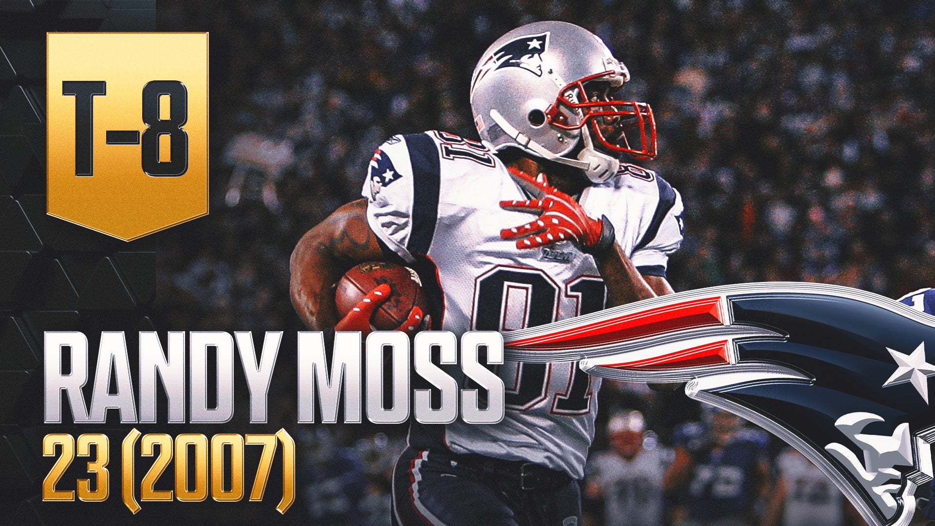 The 2007 season that featured the New England Patriots going undefeated until the Super Bowl also had several players post monster years, Moss being among them. In what was his first season with the Patriots, Moss reeled in 98 receptions for 1,493 yards and an NFL-high 23 touchdowns. His 23 receiving touchdowns stand as a Patriots record, with Moss being both first (23 in 2007) and second (13 in 2009) in a single season in franchise history.